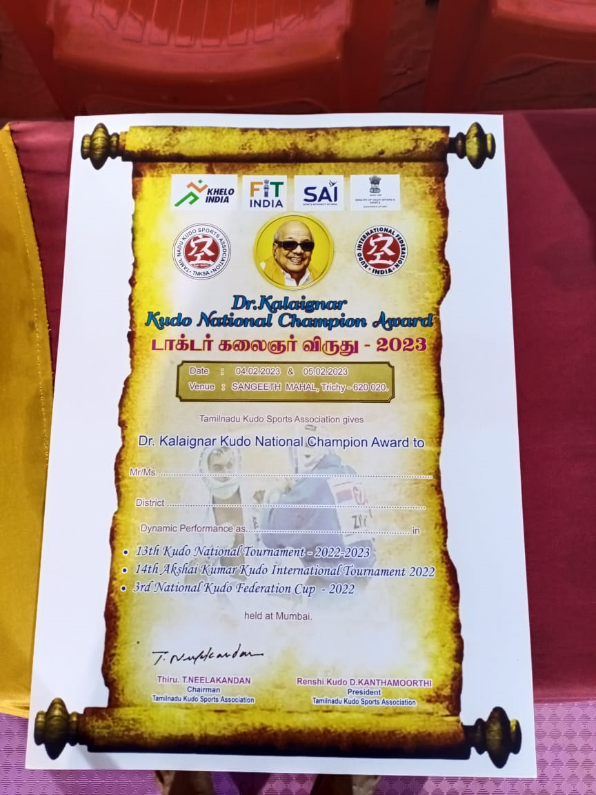 Designation : Founder of Tamilnadu Kudo Sports Association